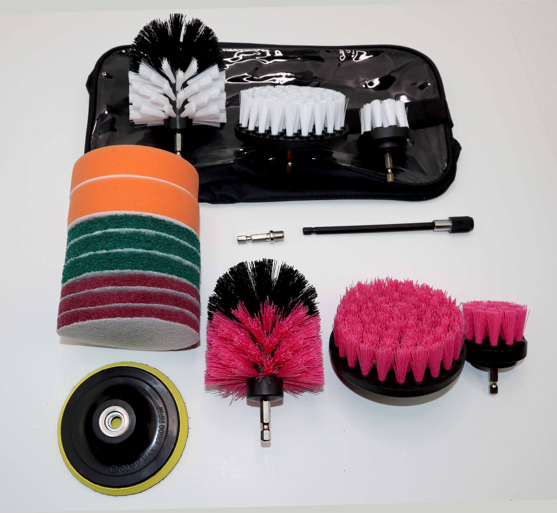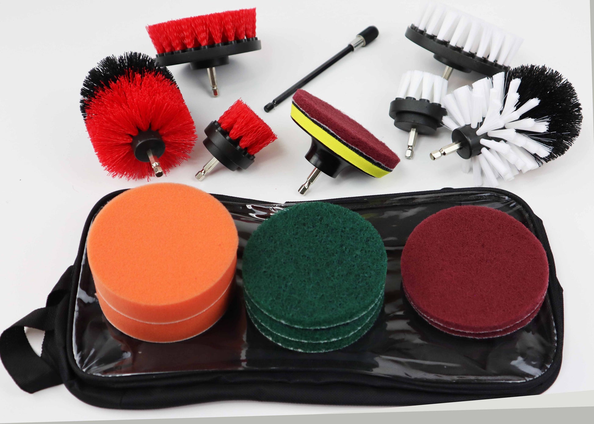 Introducing our 17 Piece Drill Brush Attachment Set with durable Carry and Storage Bag.